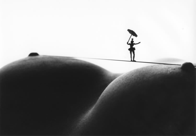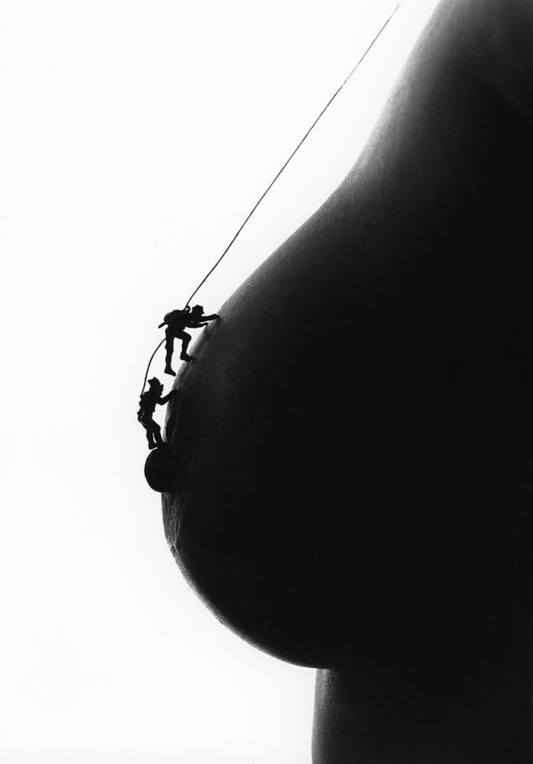 Nacido en 1942, Allan Teger se ha hecho famoso por un tipo de fotografía muy personal y fácilmente reconocible en la que se muestran partes de cuerpos desnudos que simulan paisajes y, sobre ellas, pequeños muñequitos que, con apariencia de personas reales, simulan interactuar con el paisaje que les rodea y que no es otro que esos cuerpos desnudos de los que hablamos.