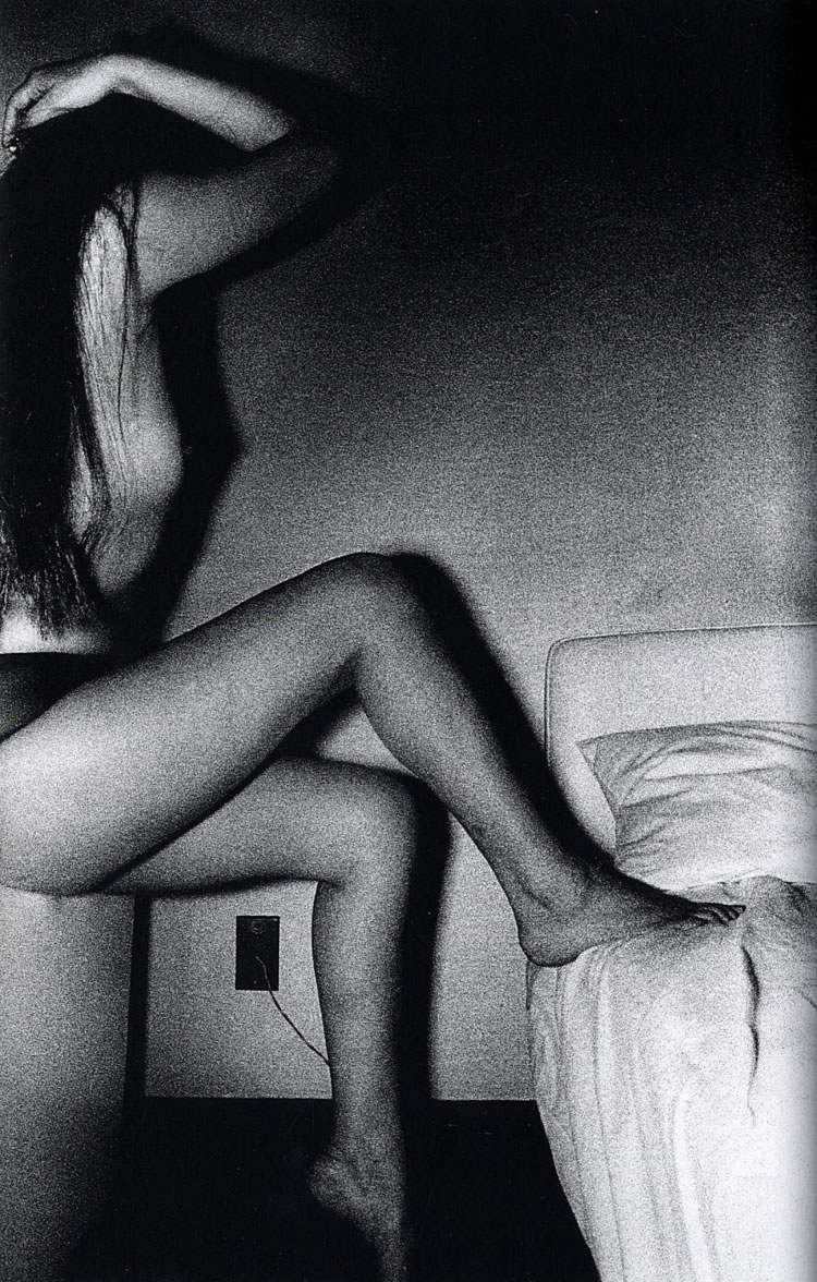 En A room observamos cómo la mirada de Moriyama se posa de forma poética sobre diversas partes del cuerpo femenino. En las fotografías de A room descubrimos muchas piernas largas, curvas de cadera fotografiadas desde diferentes e imposibles ángulos, pechos mirados desde perspectivas insólitas, alguna que otra braga y algún que otro vello púbico.