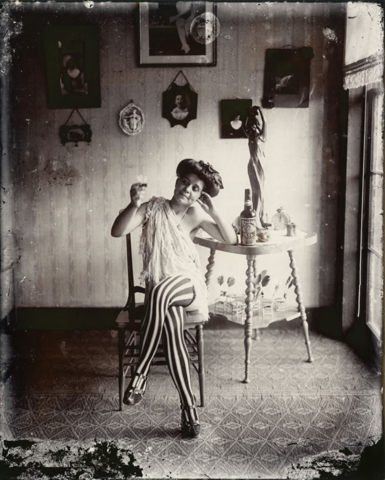Aún hoy no existe una teoría que dé respuesta a la pregunta de quién es el responsable de que los negativos de cristal de las fotografías que Ernest Bellocq había realizado a las prostitutas de Nueva Orleans alrededor de 1912 con una cámara de visor ocular aparecieran así. Hay quien habla de León Bellocq, un hermano jesuita del fotógrafo que, ofendido moralmente por el contenido de las fotografías eróticas realizadas por su hermano, deterioró dichos negativos al heredarlos tras la muerte Ernest, acaecida en 1949.