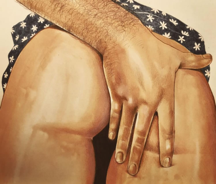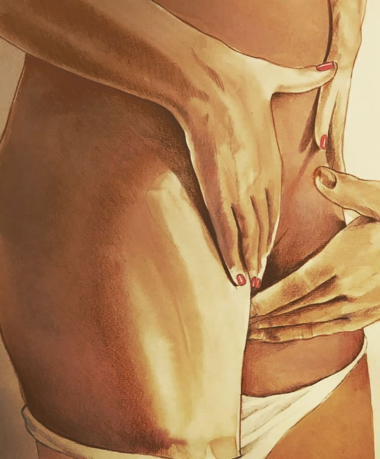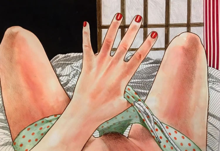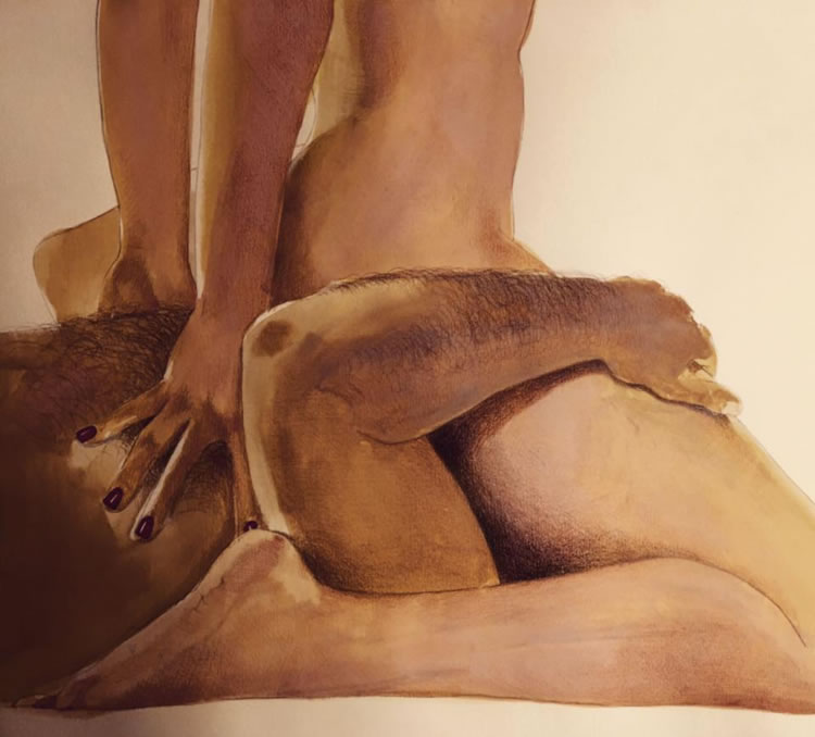 Los dibujos eróticos de Frida Castelli giran alrededor de un eje temático en el que amor y sexo se dan la mano. Contemplar una ilustración de esta ilustradora italiana es contemplar el milagro de esa fusión entre amor y sexo, sexo y amor, que, eliminando las fronteras entre uno y otro, se vuelve puro pálpito, latido casi animal, erotismo puro. Así, el sexo plasmado por Frida Castelli en sus ilustraciones eróticas no es el sexo descarnado que, desprovisto del más mínimo ramalazo de amor, plasman o parecen plasmar otros u otras dibujantes. En los dibujos de Castelli, en sus ilustraciones de tonos pastel, hay carnalidad, sí, pero también hay delicadeza, una delicadeza que es heredera de la técnica utilizada por la ilustradora pero que también es deudora, con toda probabilidad, de su forma de mirar y concebir el mundo y con su modo de entender la relación sexual.