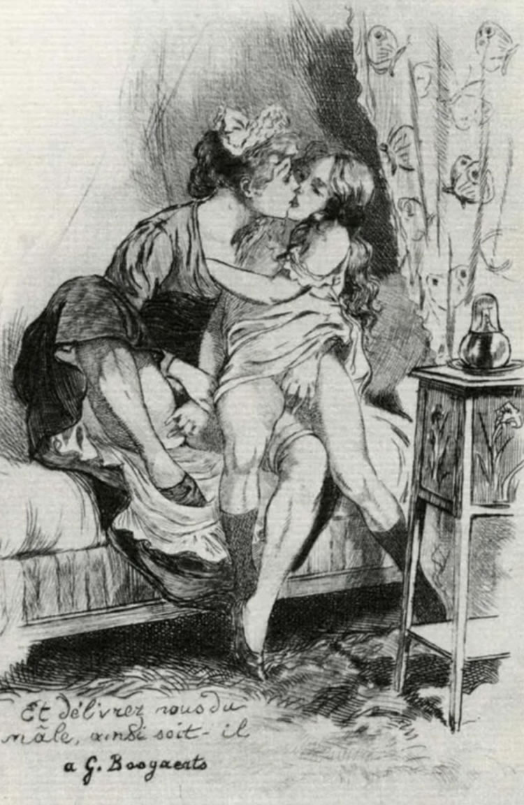 Van Maele fue, sin duda, un auténtico provocador. Después de todo, ¿cómo no había de molestar a la Iglesia el contemplar dibujos en los que monjas atormentadas por el deseo sexual se retorcían en sus celdas conventuales al contemplar cómo emergían de las sombras falos erectos y enormes que parecían apuntar a la diana misma de su virginidad? ¿Cómo no habían de resultar epatantes imágenes en las que, por ejemplo, el señorito de la casa, el niño mimado de papá y de mamá, arrodillado entre las piernas de la profesora particular de piano, practica con la misma un musical cunnilingus? ¿Cómo no había de resultar provocador para la Iglesia y sus autoridades que, en una escena dibujada por Martin Van Maele, una gran dama se deje lamer íntimamente por su perro o que en otra el profesor particular de la señorita de la casa practique el 69 con su tierna alumna? Sin duda, Van Maele debía, con todas estas obscenidades, poner los pelos de punta a los miembros más moralistas de la sociedad de la época.
