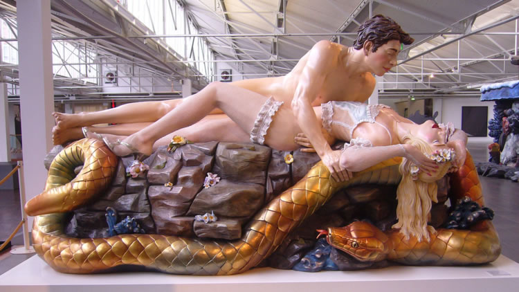 El hecho de ser marido de una actriz porno, por famosa que esta sea, no es motivo, por supuesto, para colocar a Jeff Koons en nuestra selección de artistas eróticos. El motivo de su inclusión aquí es que Ilona Staller fue algo más que la esposa de Jeff Koons y la madre de un hijo que, tras la separación y divorcio de la pareja (Koons y Staller sólo estuvieron casados poco más de un año), fue motivo de pleito entre los dos. Ilona Staller fue la musa de algunas de las obras de Jeff Koons y, sobre todo, la protagonista junto a él de la serie fotográfica y escultórica Made in Heaven (Hecho en el Cielo).