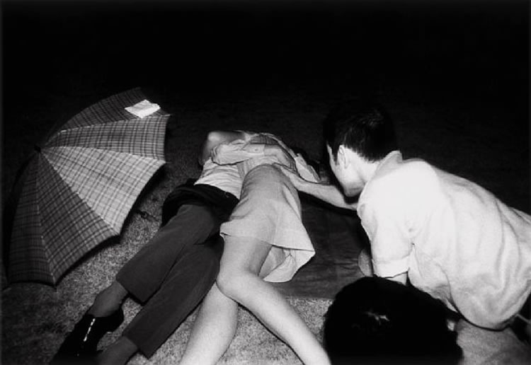 Eso es lo que capta Kohei Yoshiyuki en sus fotografías: el revolcón apresurado, el magreo a oscuras, el polvo fugaz, el rápido desahogo…