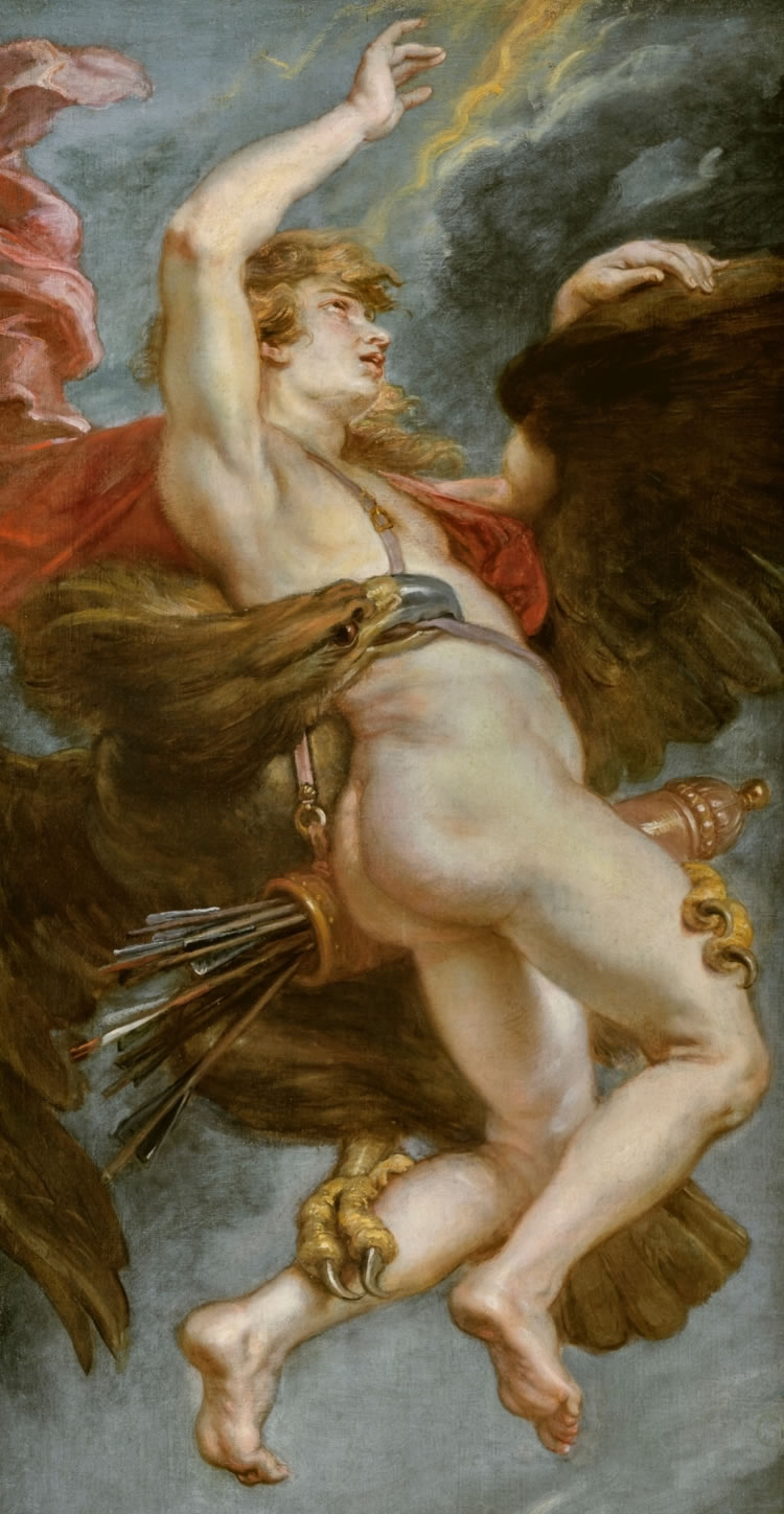 Como tantas obras de la historia del Arte, ésta del pintor alemán Pedro Pablo Rubens también encuentra su inspiración y su motivo en alguna historia tomada de la mitología clásica. En este caso, Rubens se sirve del rapto del joven Ganímedes por parte de Júpiter. Éste, transformado en águila, quiere raptar a aquél para convertirlo en su amante.