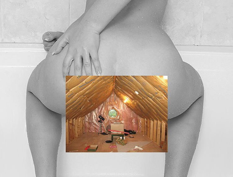 El collage es la técnica que ha escogido Scientwesht para realizar su obra. Pero el collage de Scientwesht es un collage muy original: en él se mezclan desnudos reales con interiores y exteriores arquitectónicos.
