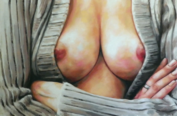 Visitar la web de Thomas Saliot, así como sus publicaciones en Tumbrl y en Facebook, resulta muy estimulante. En este artículo hemos querido reunir un puñado de las creaciones de ese maestro de la sensualidad y el erotismo que es Thomas Saliot. Creemos que son sugerentes y que pueden servir de muestra para comprender hasta qué punto una sola imagen puede sugerir toda una historia. El imaginar la historia que se esconde tras cada una de las imágenes, dice Saliot, debe ser tarea del espectador de la misma. Guiándonos por las palabras del pintor francés, te proponemos un juego. Contempla las fotografías de los cuadros de Thomas Saliot que hemos seleccionado para ti y echa a volar tu imaginación. ¿No crees que puede resultar estimulante el imaginar qué historia se esconde tras una imagen en concreto?